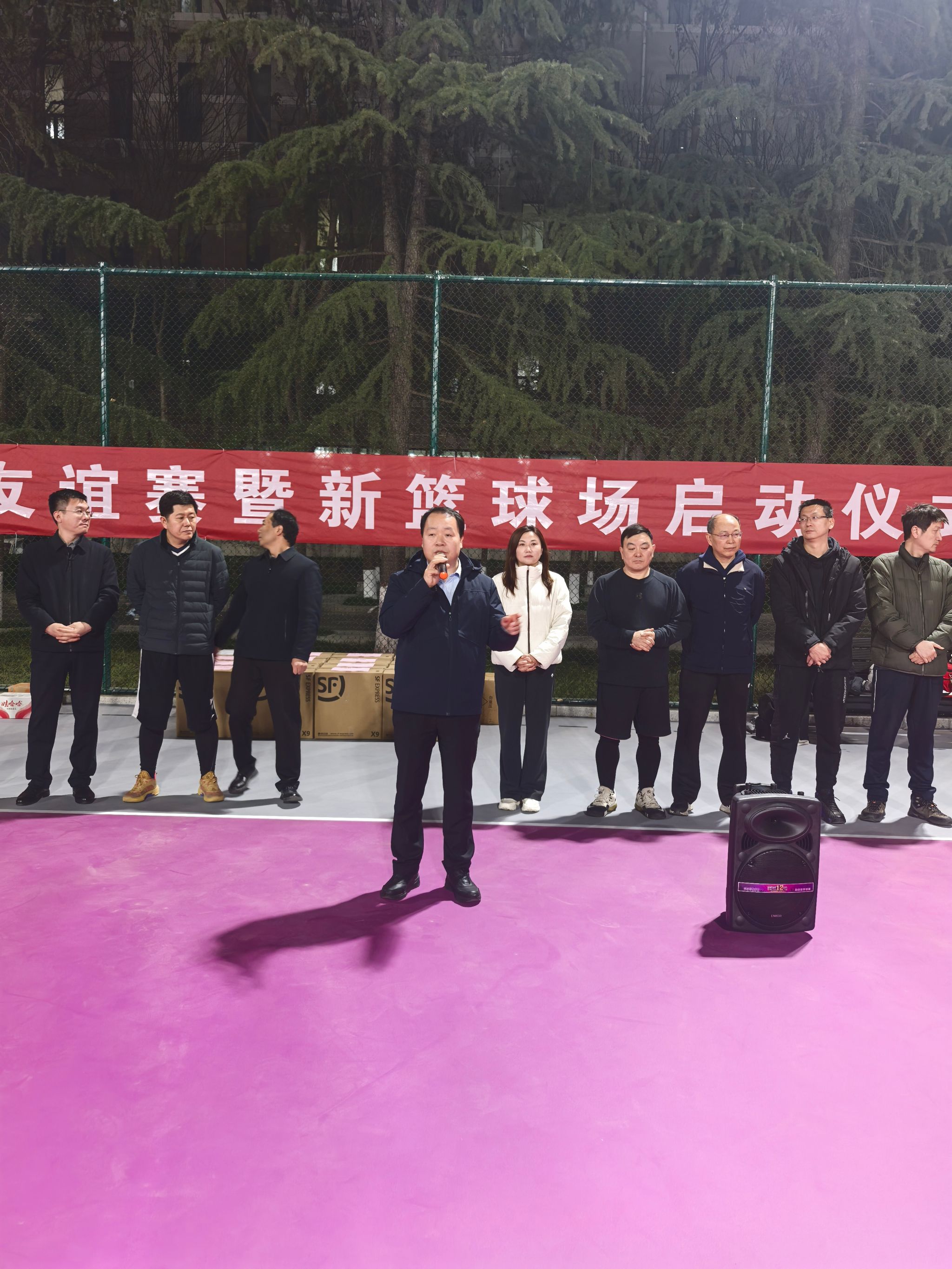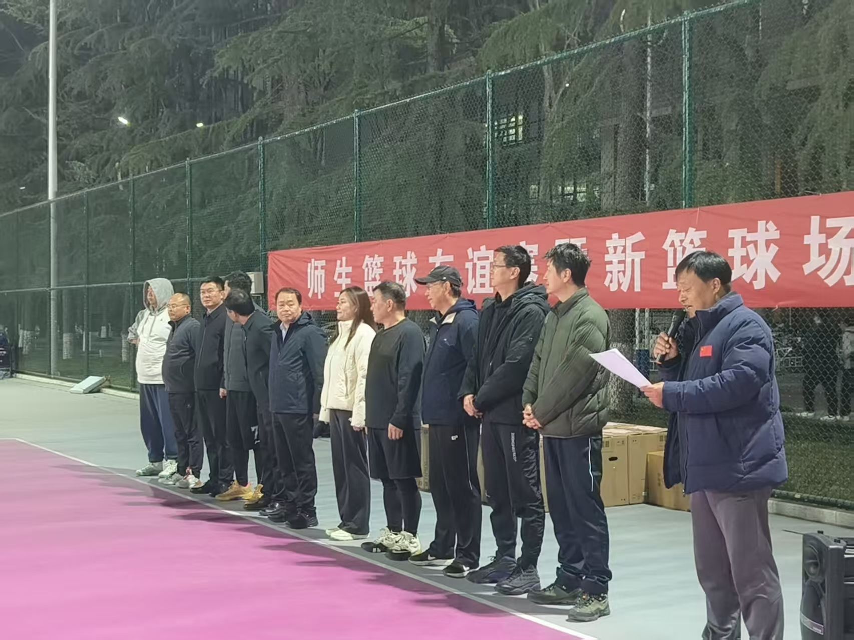 王云博副校长代表学校向各学院赠送部分体育运动器材并为篮球友谊赛致辞和开球。王云博在致辞中谈到,当前学校已经形成了非常浓厚的“以体育人,强师报国”的文化氛围,近年来学校党委也是下大力气改善校园各类体育运动场地,为师生健康学习、工作、生活创造条件。他指出,篮球场改造项目是在学校党委统一部署与筹划下完成的,是学校为师生办实事的一项重要内容,建设前期,广泛听取了师生的意见建议,多次进行方案论证;建设过程中,后勤管理与保障处严把工程质量关,师生全力支持,各方协同配合才有了今天高质量球场的交付启用。他表示,对于师生在基础设施和服务保障方面的其他意见建议,学校也都在积极研究论证,尽最大努力给大家创造更好的工作学习生活环境,也希望师生能够在工作学习之余,多走向运动场,“将灵敏的脑力寄寓于健康体魄之中”,用运动促进大家的健康成长,快乐工作,用运动增进师生感情。